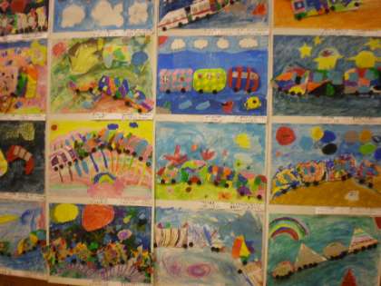 2年生は「ゆめのでんしゃ」、「デラックスかきごおり」、「カラフルくものす」、「みらいのうちゅうせん」