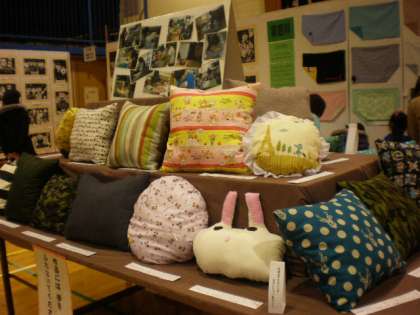 6年生が家庭科で作った手作りクッションも出展しました。