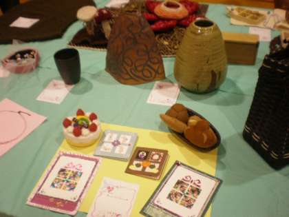 ニット作品や陶芸作品、ビーズに手芸と、