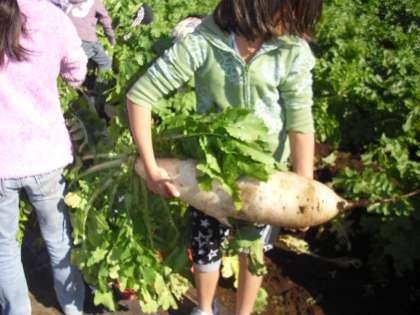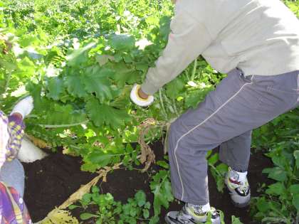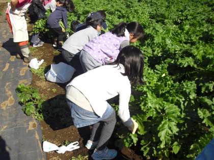 農園の方に抜き方のこつを教わったり、先生や主事さんに手伝ってもらいながら、