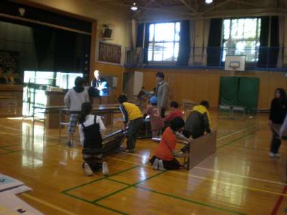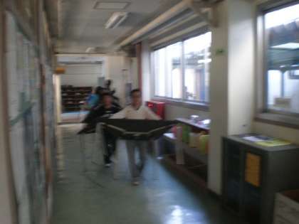 重い机や展示パネルをみんなでせっせと運んで片付けます。