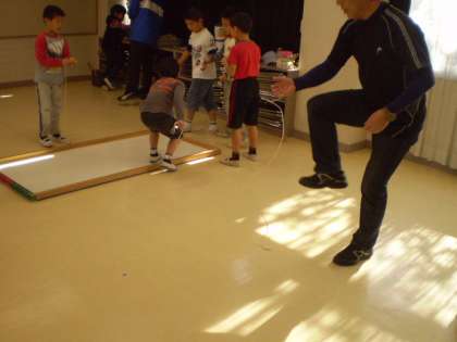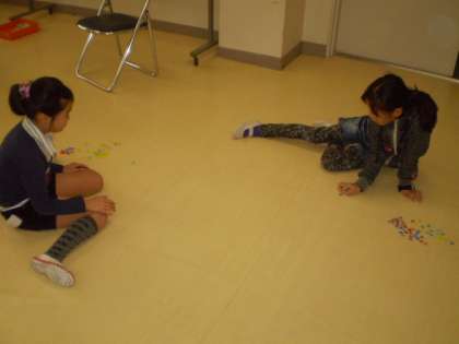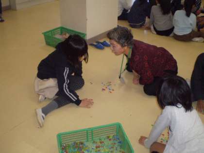 地域の皆様にご協力をいただいてコマ回しやおはじきの遊び方を教えていただきました。