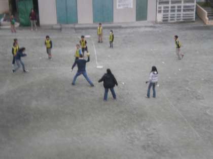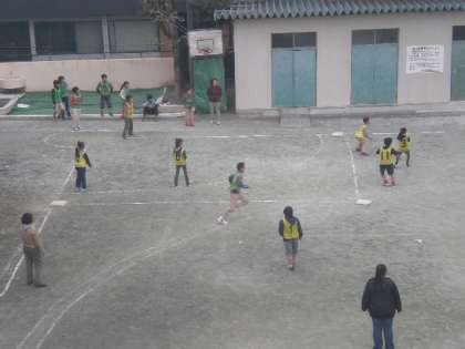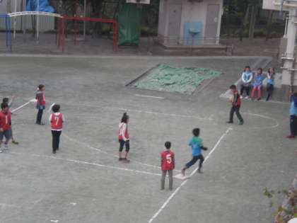 みんな楽しくキックベースをしました。