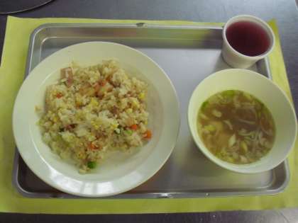 献立名 えびチャーハン 牛乳 わかめスープ ぶどうゼリー