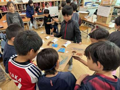 2年生が生活科の授業で作ったおもちゃたちを使ってたくさんの工夫を考え、1年生をを楽しませてくれました。行く前からとても楽しみにしていた1年生たち、笑顔で溢れていました。