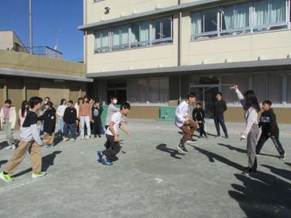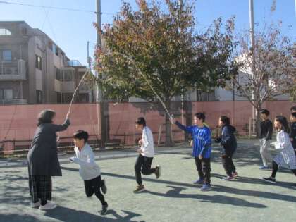 11月25日(月)より、若小チャレンジ「大繩」が始まりました。縄の回転をよく見て、タイミングよく縄の下に入り、跳んでいます。先生も縄の回し手として頑張っています。期間中、全校で1万回跳ぶことを目標にしています。クラスが一体となって取り組んでいて、さらに絆も深まりそうです。