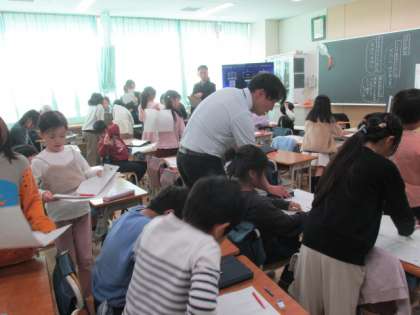 11月25日(月)2年3組にて、国語の研究授業がありました。物語を読んで、主人公がしたことから想像を膨らませて、ワークシートにまとめる学習です。物語の文を一文、一文、丁寧に読み取り、文章を手掛かりにして豊かに想像していました。交流の時間では、積極的に友達に声をかけて、まとめたものを見合っていました。これからも物語の楽しさを存分に味わいながら学習を進めていきます。
