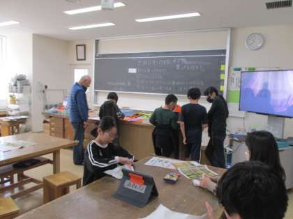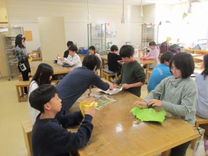 11月29日(金)5年生対象に、世田谷美術館による特別授業がありました。色画用紙を柔らかくなるまで揉み、自分が表したい葉の形に成形しました。どんな形の葉にしようか、友達や先生からアドバイスをもらって決めていました。