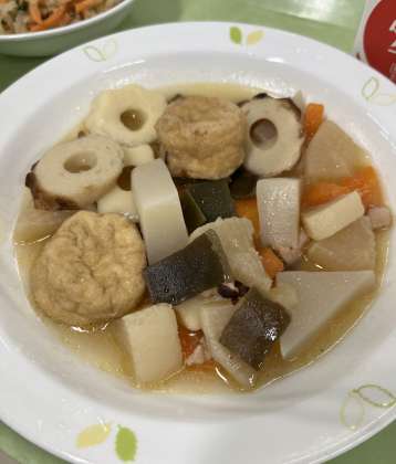 今日は「せたがやそだち」の給食で、世田谷区で作っている大蔵大根をおでんに使いました。