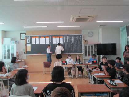 12月4日(水)5年2組にて学級会の研究授業が行われました。議題は「2学期のがんばったね会をしよう」です。総合のSDGsの取組や大学学園祭での出店披露、そして運動会と様々な学習・行事で力を尽くした5年生。そのがんばりをみんなで称え合おうという会です。学級会では、当日どんな活動を行うか話し合いました。動画づくりにゲームなど、様々なアイデアが出ていました。当日、どんな「がんばったね会」になるのかとても楽しみです。