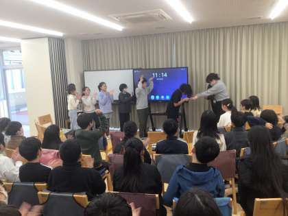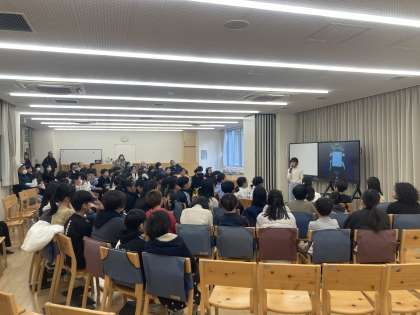 日本語「一冊の本から」の学習で、「学年ビブリオバトル決勝大会」を開催しました。ビブリオバトルは、おすすめの本の紹介を聞いて、一番読みたくなった本を決めるものです。白熱した各クラスでの予選会を終え、決勝大会には6名の代表が出場しました。代表の子供たちは、好きな本の魅力を存分に語りました。チャンプ本には、5年生全員、保護者の皆様の投票により『謎解きホームルーム』一般社団法人 日本児童文芸家協会編 が選ばれました。今回のビブリオバトルを通して、友達が紹介した本を読んで、読書の楽しさが広がることを期待しています。