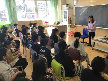 今年度も大林先生をお招きして素話をしていただきました。子どもたちは、静かに集中しながらも、ときに笑顔を見せながら大林先生のお話をしっかりと聞いていました。