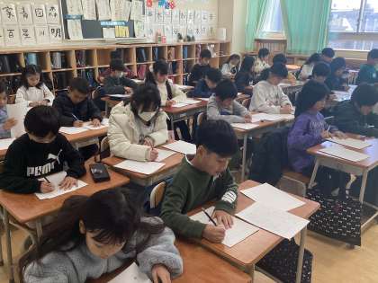 二年生は各クラスで書き初めを行いました。