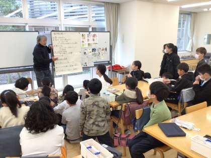 どの子のどの絵にも良さがあること、失敗しても成功しても気持ちさえこもっていれば味が出てくることなど、たくさんのことを伝えていただきました。子どもたち同士でそれぞれの絵の良さを称え合っている様子もたくさん見られ、笑顔で楽しく取り組むことができました。