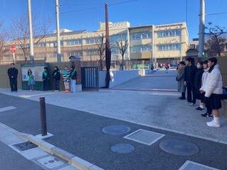 今学期は、正門だけでなく世田谷保育園側にも立ってあいさつを行いました。寒い朝でしたが、笑顔であいさつをしていただけると、あったい気持ちになれました。