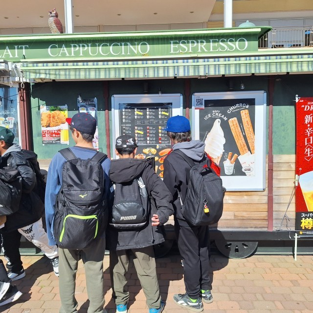 グループ行動が始まると、地図を見てアトラクションの場所を確認するグループや、ミールクーポンで何を買おうか相談しているグループなど様々でした。