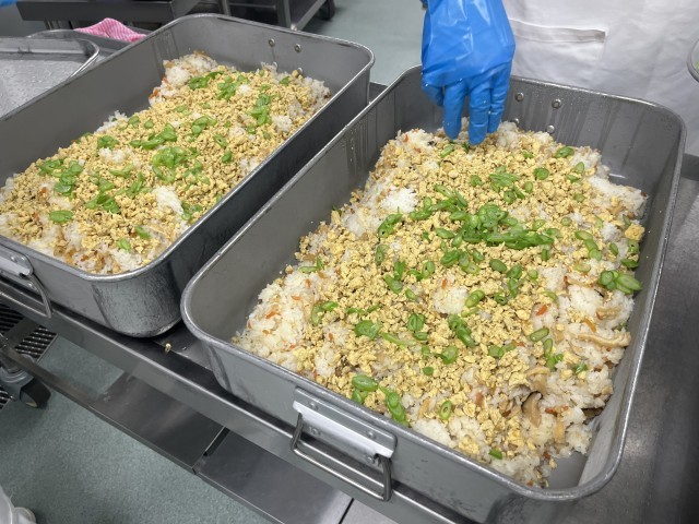 今日の給食は、ひな祭りにちなんだ「ちらしずし」が登場しました。彩り豊かなちらしずしは、ひな祭りのお祝いにぴったりの一品です。
