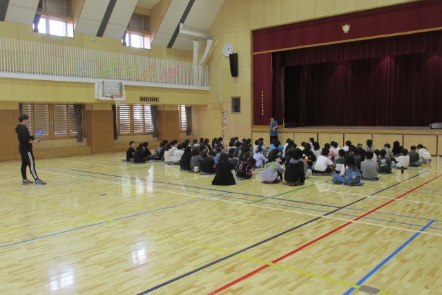 昨日のクラブ活動の振り返りや、来週火曜日の委員会活動における取り組みについて話をしています。