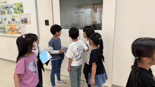 1年3組の子どもたちが、2年3組の子どもたちに学校を案内してもらいました。2年生は、事前に校内の特別教室について調べて、説明をまとめてくれていました。