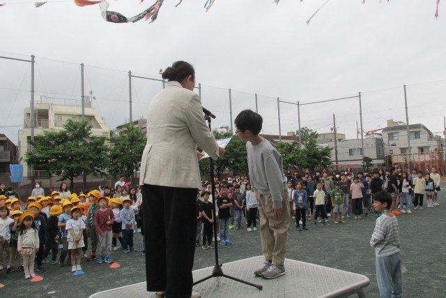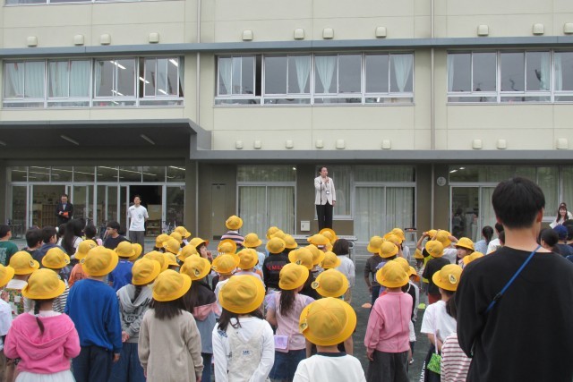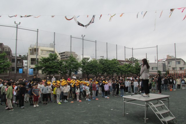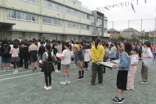 写真は順に6年生のあいさつ、校長講話(「若小チャレンジ」への取組、「日本語チャレンジ」(6年)への取組、セーフティ教室について)、児童の表彰、看護当番の話(今週の生活目標「気持ちのよいあいさつをしよう。」について)、鼓笛隊演奏、演奏後の振り返りです。