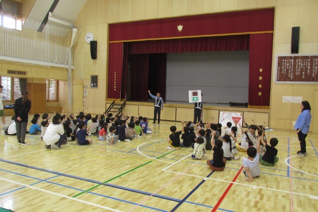 世田谷警察署のご指導で、正しい歩行、横断の仕方について学びました。