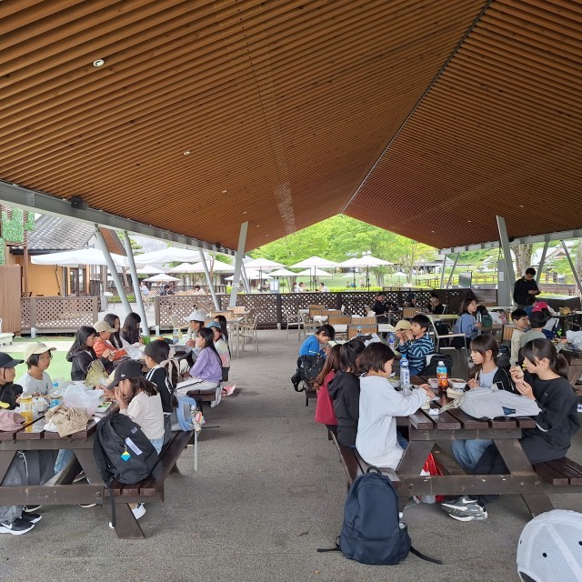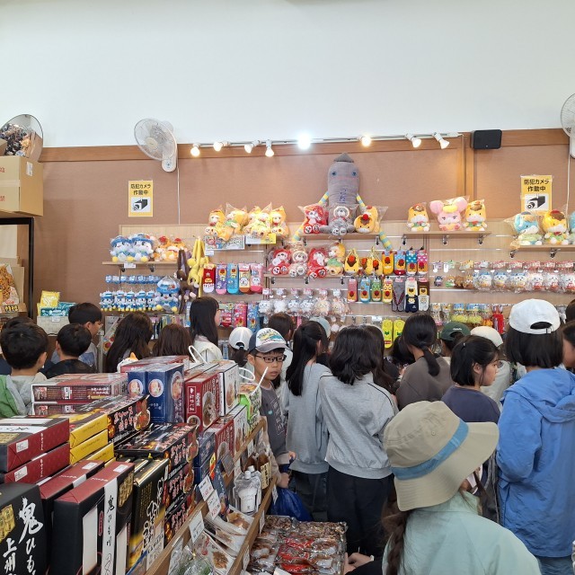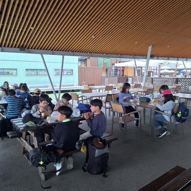 川場村の田園プラザに着きました。ここでは、お楽しみの昼食タイムとお土産のお買い物です。お弁当を食べ終わると、一目散にお土産屋さんに向かう子どもたちでした。