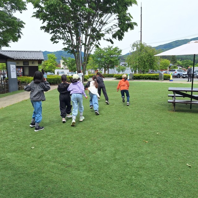 田園プラザには、自然いっぱいの風景が広がり、小さな水田や鯉がたくさん泳ぐ池もあり、子どもたちもゆったりと過ごしながら川場村の魅力を感じていました。