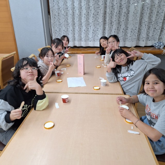 星の学習の後は、夜のお楽しみのジェラードを食べました。ミルク味の冷たくておいしいジェラードでした。今日は、ハイキングで体力を使ったので、ぐっすり眠れそうです。2日目も子どもたちの笑顔がたくさん見られました。
