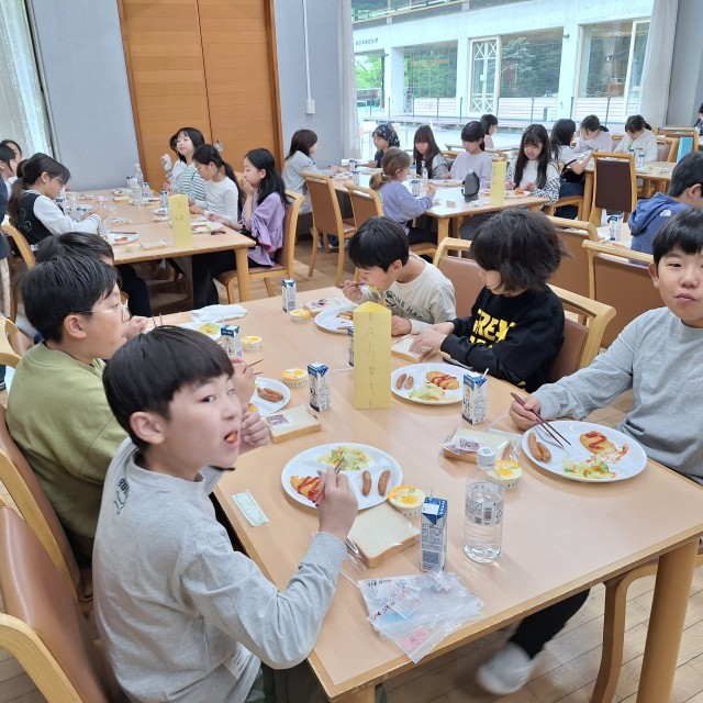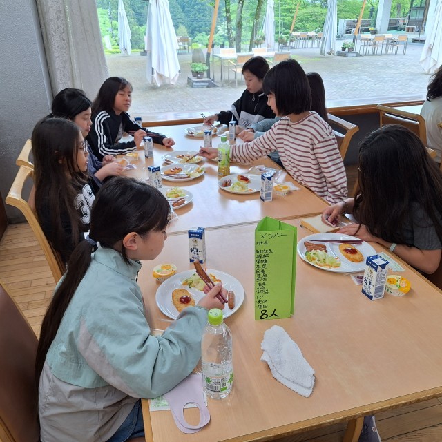 3日目の朝食です。食事は毎回おかわり争奪戦です。これから川場村を歩いて回るので、しっかり食べてほしいです。食後は、荷物まとめもあります。詰め忘れがないように確認できると良いです。