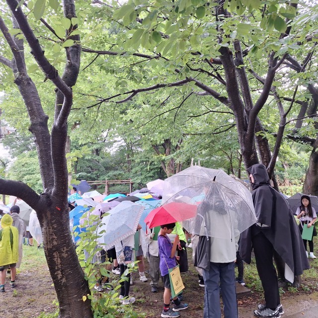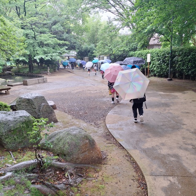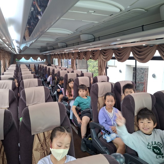 今日は、3年生の社会科見学の日です。雨天になってしまいましたが、子どもたち皆元気に、バスに乗って出発しました。最初の行き先は、次太夫堀公園です。