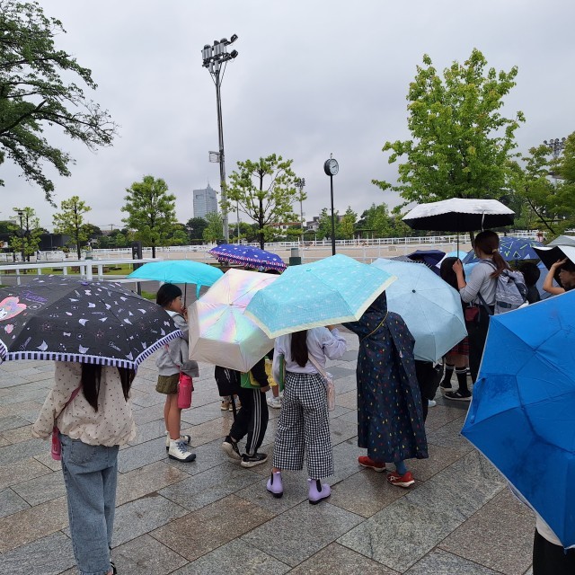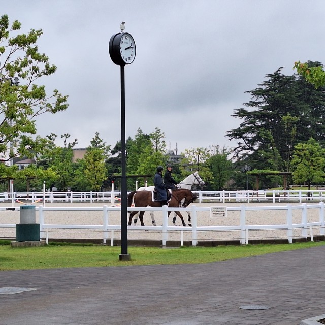 「食と農の博物館」の後は、馬事公苑に行きました。雨が降っていましたが、運良く馬を見ることができました。軽快に走る馬をじっくり眺めていました。