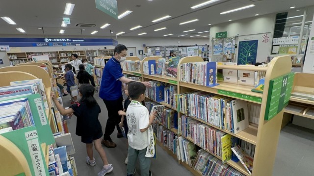 図書館では見学だけでなく司書体験もし、最後にはクラスの願い事を七夕飾りに貼らせていただきました。