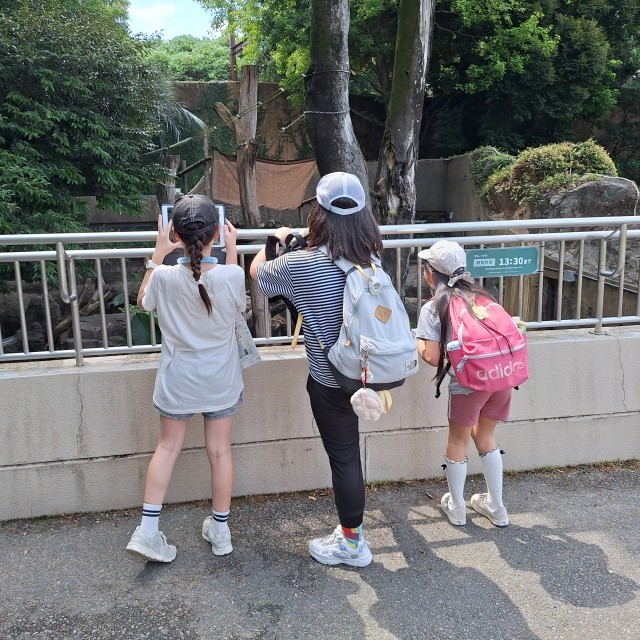 上野動物園に着きました。入場するとお目当ての動物めがけてまっしぐらに進んで行きました。暑さのためか、動物たちもいささかお疲れ気味?なかなか見ることができない動物を見付けては大喜びしていました。飼育係の人にも自分から声をかけていました。