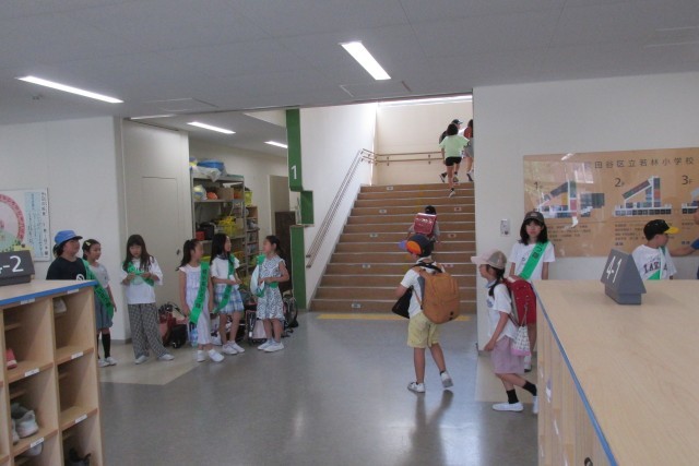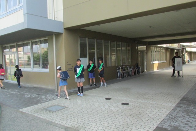 若小班3班によるあいさつ運動とその後の振り返りの様子です。
