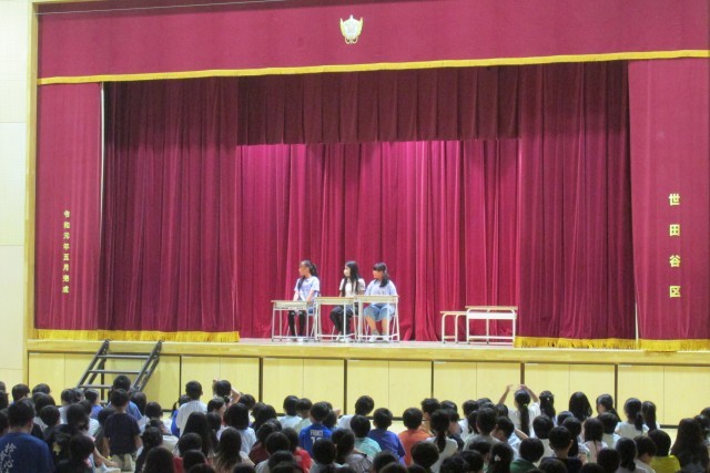 学校生活におけるルールやマナーについて、寸劇を通して訴えました。