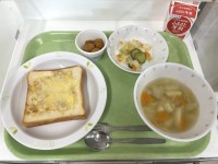 ツナマヨトースト白菜のサラダお豆のスープ月見だんご牛乳今日は十五夜です。給食では...