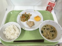チキンライスレモンサラダ白菜の豆乳スープおからマフィン牛乳