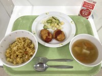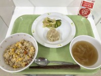チャーハンジャンボしゅうまい中華サラダ白菜のスープ牛乳