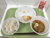 ツナピラフ豆腐のナゲットマカロニ入りサラダ野菜スープ牛乳今日のナゲットは1人2個...
