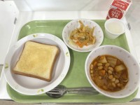 ハニートーストポークビーンズワンタンパリパリサラダホワイトゼリー牛乳