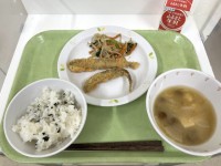 わかめごはんししゃものフライこまつなのおひたしなめこのみそ汁牛乳