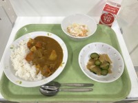 カレーライスこんにゃくサラダ焼きりんご牛乳