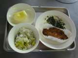 献立名 さつまいもごはん 牛乳 松風焼き ほうれんそうの乾物あえ りんご 主な食...