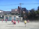 5年生が元気にサッカーをしています。 校庭全面を使った試合です。 男の子も女の子...