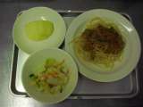 献立名 スパゲッティカレーソース 牛乳 ポテト入りフレンチサラダ りんご 主な...