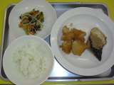 献立名 ごはん 牛乳 魚のごまだれかけ おひたし ジャガイモの甘辛煮 主な食材の...