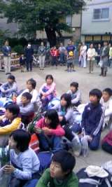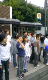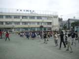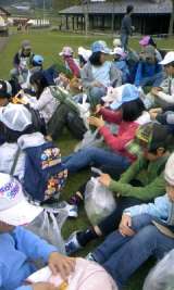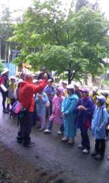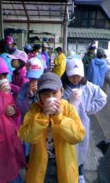 閉校式をおえ村めぐりに出発です。すこし雨がふってきました。
