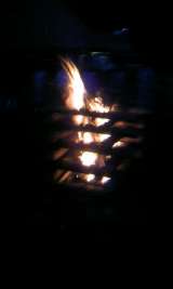 まっくらななか燃えあがる火。響く歓声。盛り上がってます。