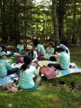ハイキングも無事終わり、昼ごはんです。快晴です。 11時30分
