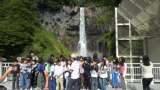 いろは坂を上がり、2日目の最初はけごんの滝です。1番乗りです。虹が見える滝を見学...
